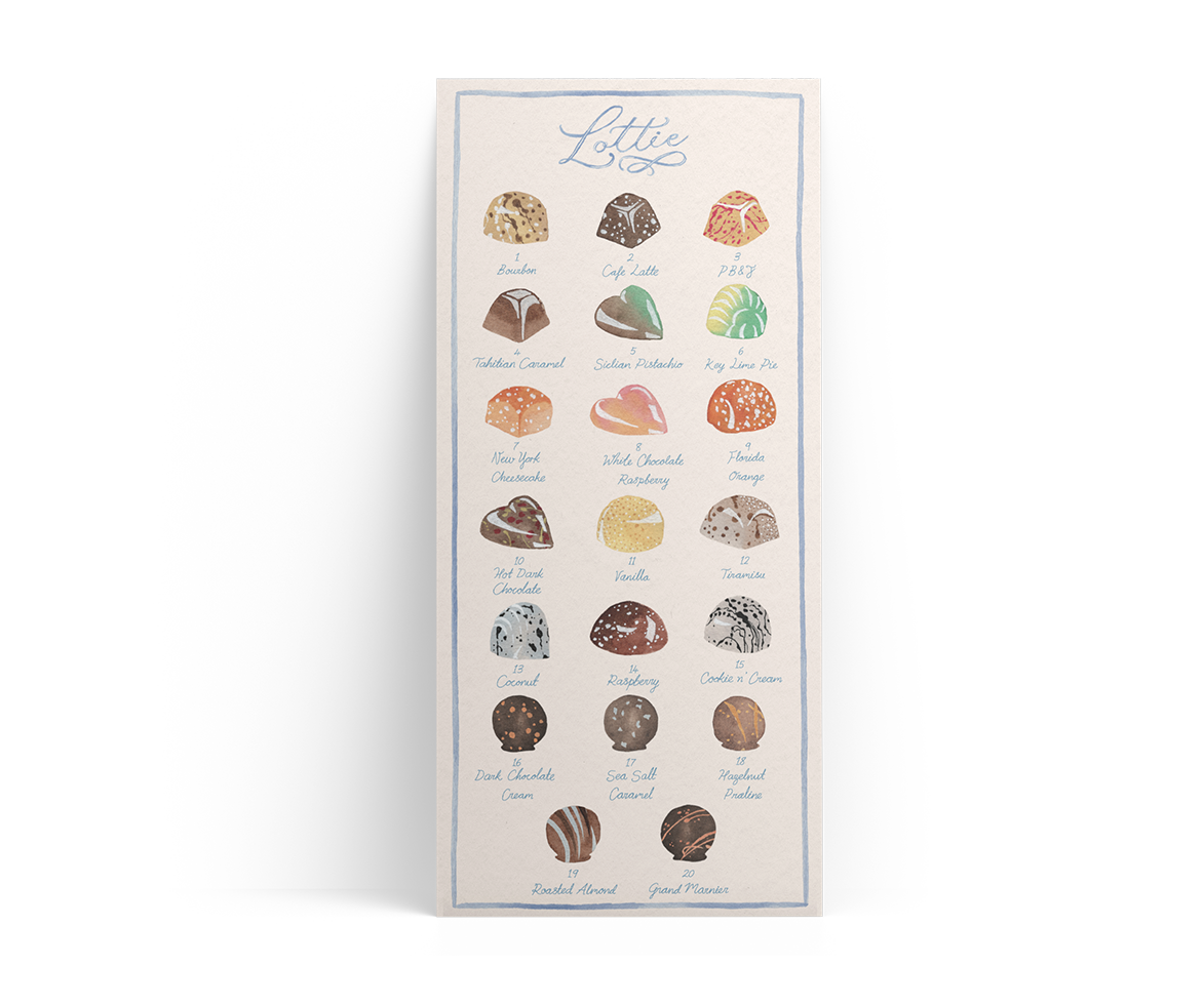 I created a menu for "Lottie" the signature chocolate experience at The Vinoy Hotel in St. Petersburg Florida. This was created with watercolor and handwritten font to create a nostalgic and vintage-inspired menu to celebrate the sought-after chocolate experience.