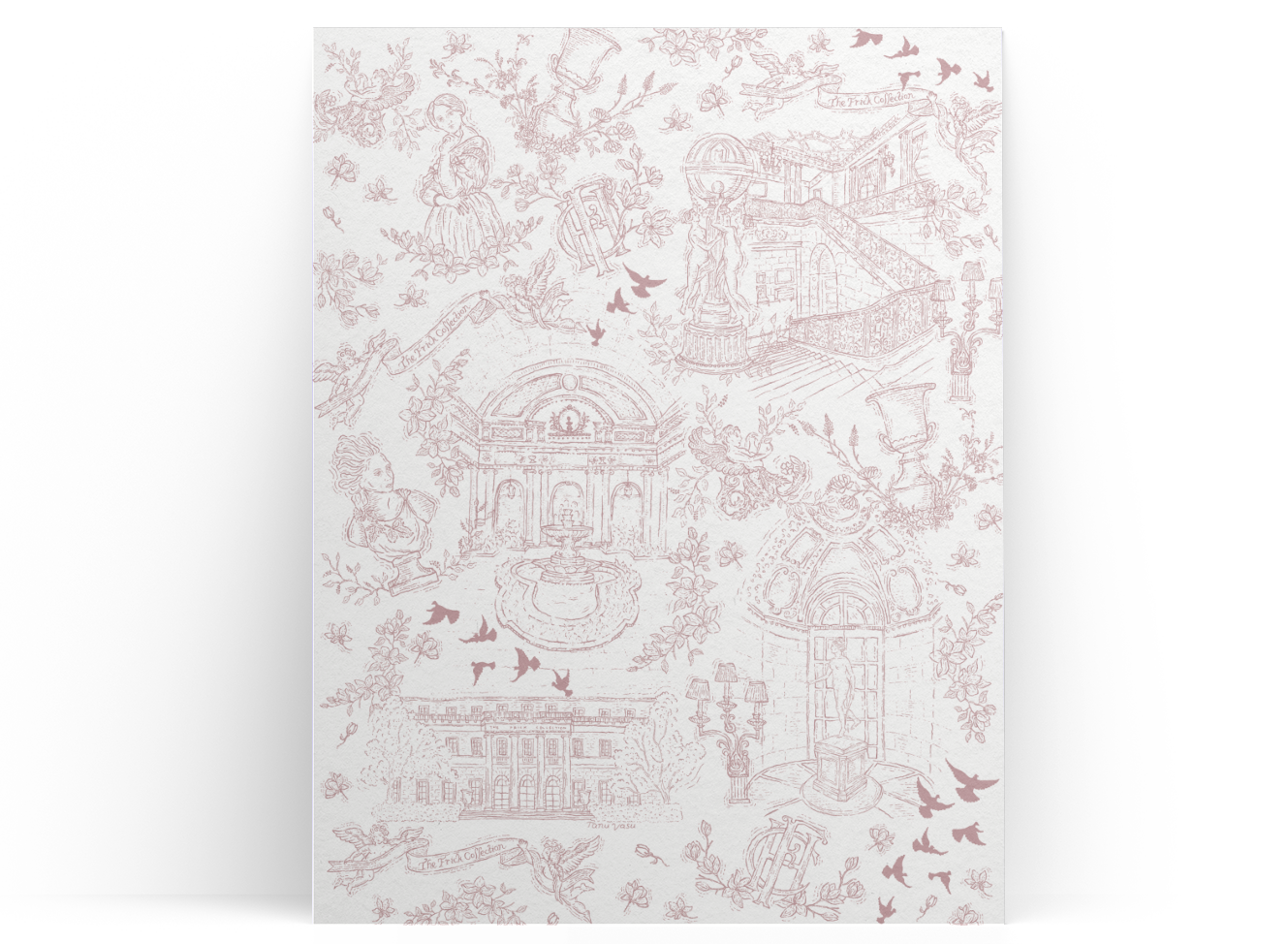 I illustrated a holiday ornament for The Frick Collection, capturing the timeless beauty of its iconic Garden Court. Rendered in a delicate pen-and-ink style with soft pastel tones, the artwork highlights the classical columns, cascading fountain, and serene architectural symmetry that define one of the museum’s most beloved interiors. Subtle touches from the intricate stonework to the gentle glow of holiday lights bring a sense of seasonal charm to the design.