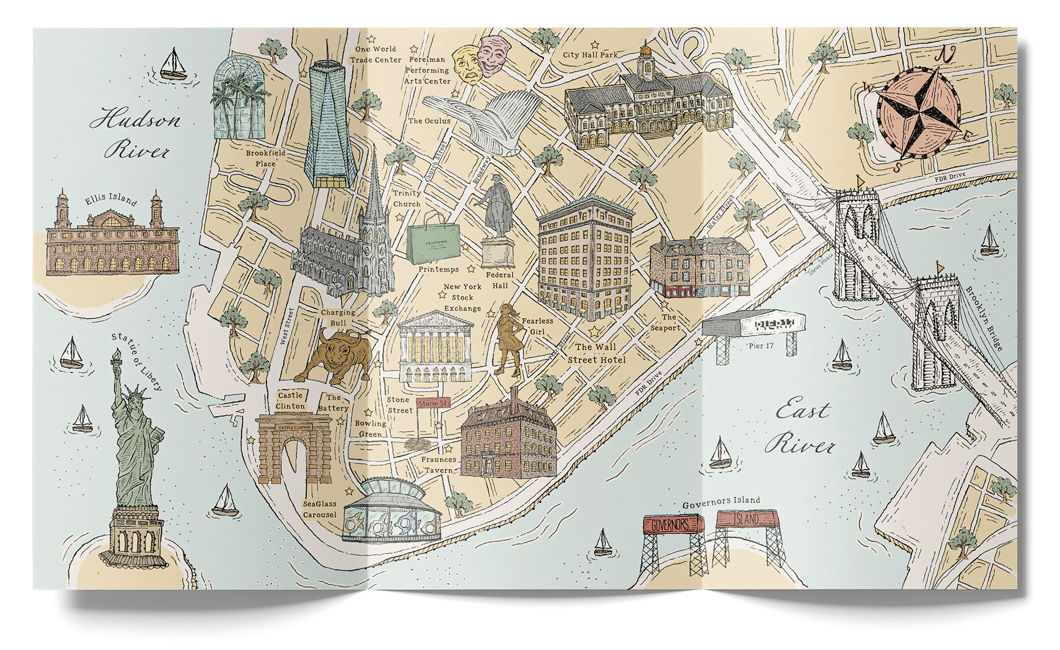 For the Four Seasons Hotel San Francisco at Embarcadero, I conceptualized and illustrated an exclusive neighborhood map that celebrates the city’s architectural heritage and modern sophistication. Anchored in the heart of the Pyramid District, the map captures the distinctive spirit of San Francisco where steep hills, historic facades, and creative energy converge along the Embarcadero.